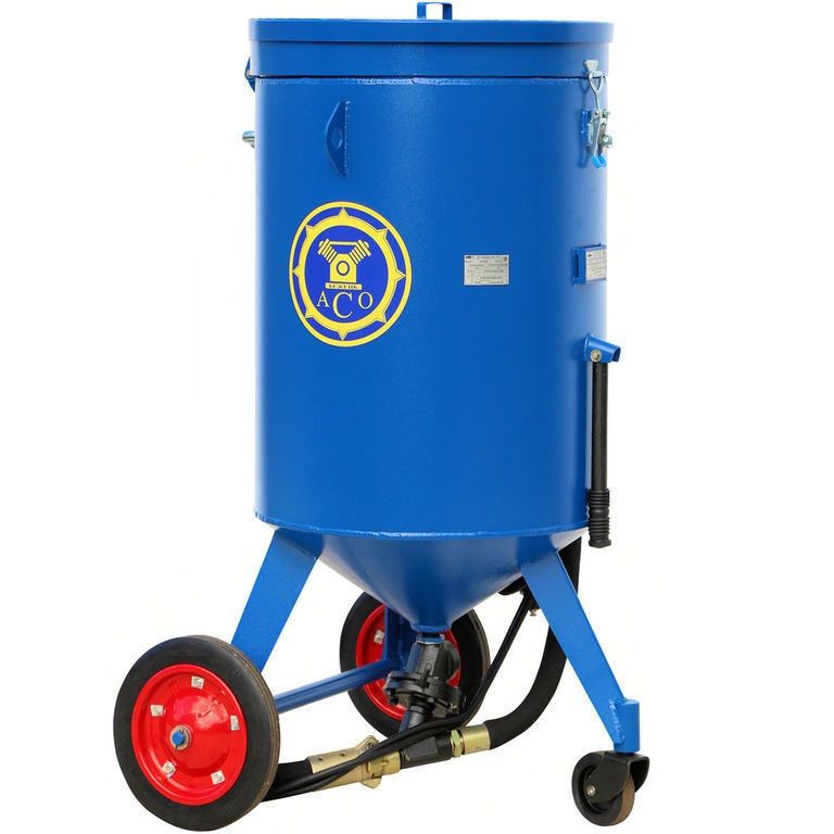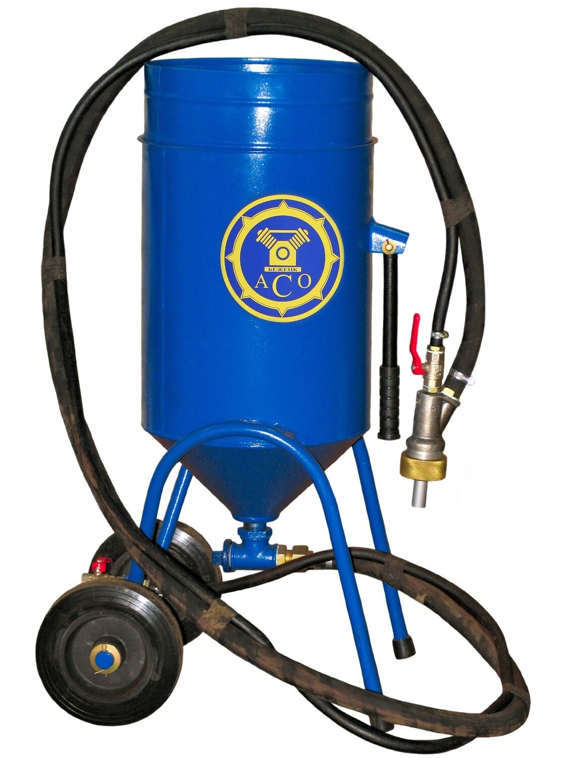 С помощью аппарата струйной чистки напорного типа модели АСО-200 производится очищение поверхностей от загрязнений (краска, окалины, коррозии). Также устройство применяется, чтобы подготовить поверхность к окраске. Процесс очищения – воздушно-пескоструйный. Устройство состоит из ресивера, который образует рабочую камеру, приемного бункера защитной с сеткой, дозатора соплодержателя и абразива с дистанционным управлением.