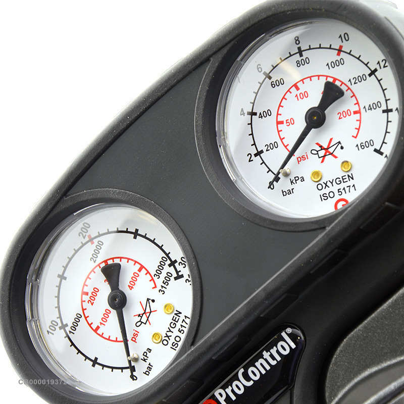 ProControl OX – мощный и современный редуктор, который возможно применять со всеми стандартными техническими газами под давлением до 200 бар. Редуктор массивный, выполнен из высококачественного материала и надежно защищен каучуковым чехлом, защищающим заднюю панель манометра и создающим дополнительную герметичность.